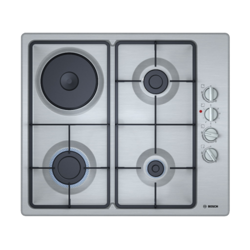 BOSCH Kombinovana ploča 3/1 (plin/struja) PBY6C5B62O Serie 2|, 60 cm, Mehaničke kontrole, jednoručno paljenje, Nehrđajući čelik , Dizne za zemni plin (20 mbar), Priložene mlaznice za tekući plin (28-30/37 mbar), TR
