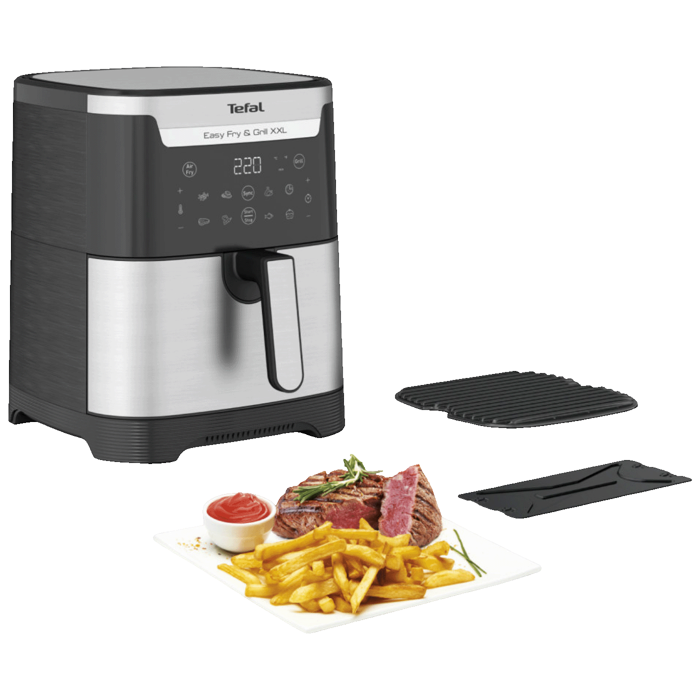 Tefal Easy Fry & Grill XXL EY801D15 je višenamjenski kuhinjski uređaj koji kombinuje fritezu na vrući zrak i grill u jednom aparatu, omogućavajući pripremu raznovrsnih jela na zdraviji nač...