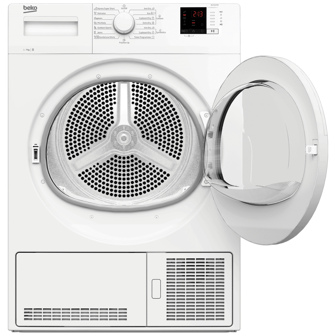 Samostojeća kondenzaciona sušilica veša, kapacitet sušenja 7 kg., 15 programa: Pamuk Iron Dry, Pamuk Eco Dry, Pamuk – suho za ormar, Pamuk Extra Dry, Sintetika Iron Dry, Sintetika – suho za ormar, Drying Rack / TimeDry, Refresh – osvježavanje vune...
