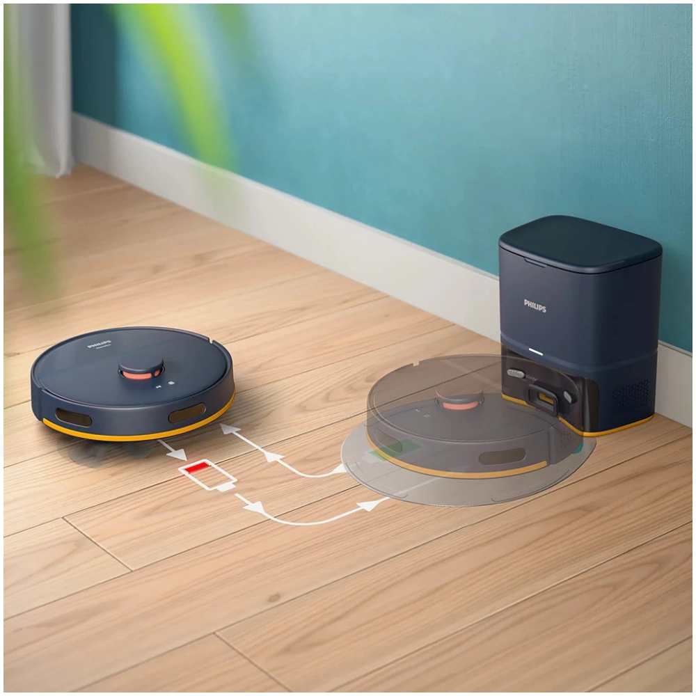 PHILIPS Usisivač XU2100\10 ROBOT Boja: Tamnoplava Usisivač za mokro i suho čišćenje: Da Nivo buke (Db): 66 Db Radno vrijeme: 130 minuta Visina (cm): 97 mm