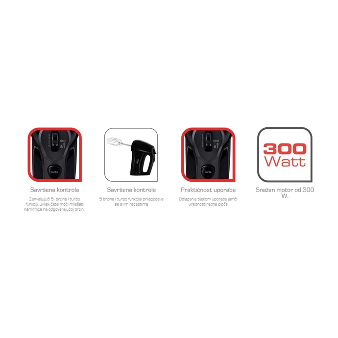 TEFAL Quick Mix HT310838 Miješanje je brzo i lako uz Quick Mix mikser! Quick Mix je višenamjenski, snažni električni ručni mikser koji pomaže u brzoj pripremi torti i kolača! Snažan motor od 300 W, 5 brzina Turbo omogućavaju savršenu kontrolu sv...