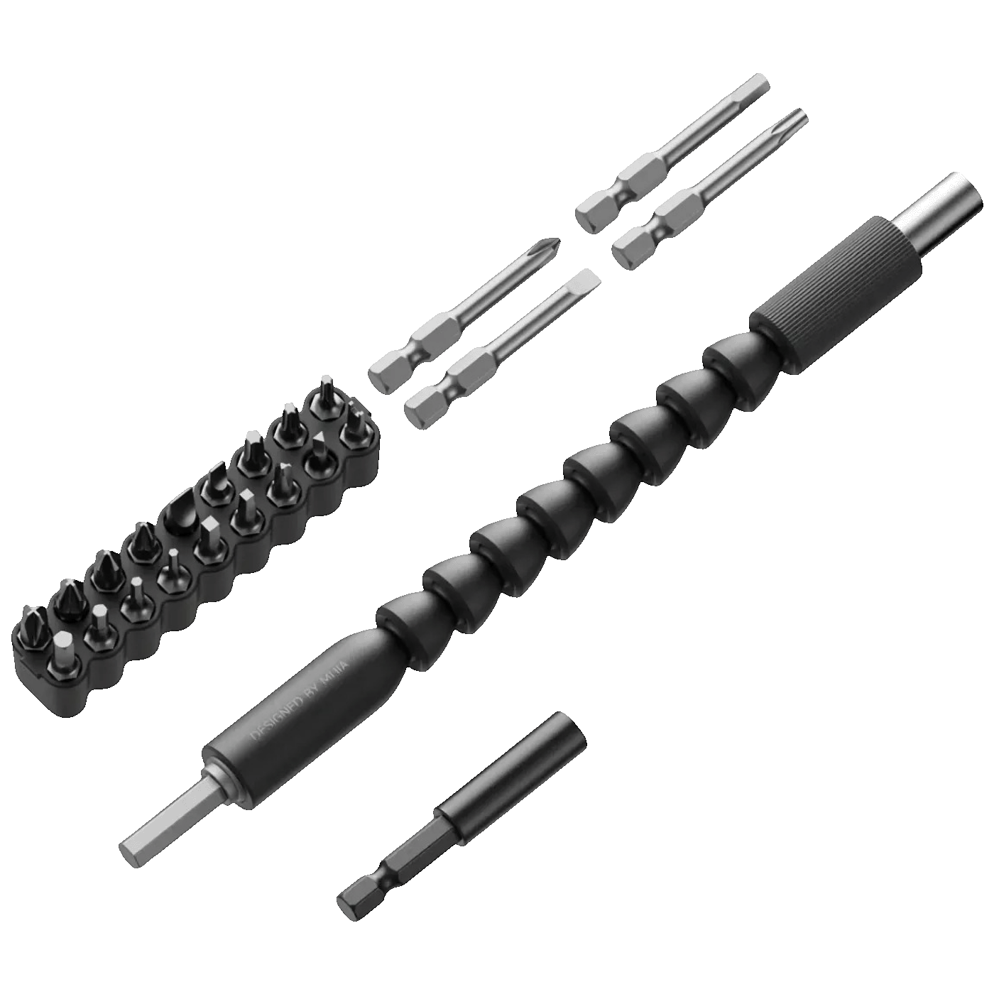 Za dodatnu fleksibilnost tu su univerzalna fleksibilna osovina s ugrađenim magnetom za rad u uskim i nepristupačnim kutovima te produžni nastavak od 60 mm koji olakšava pristup teško dostupnim mjestima.