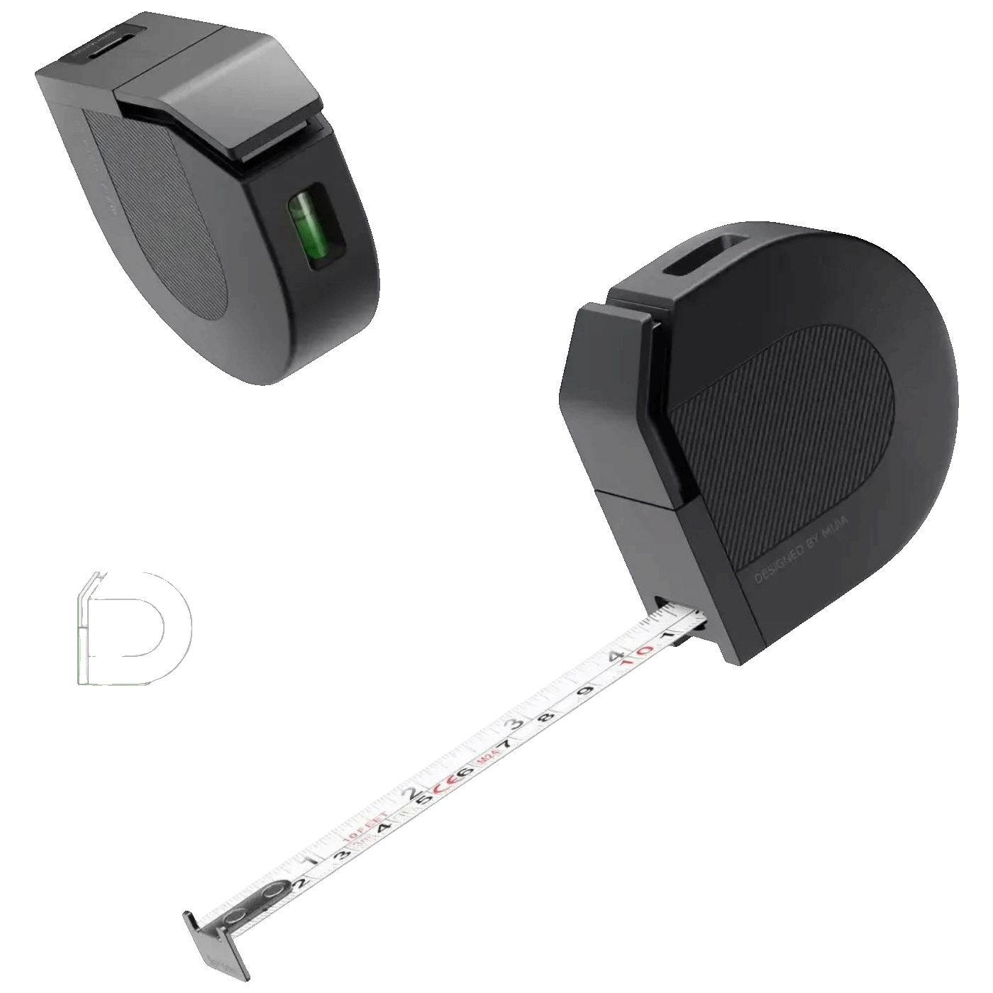 Mjerna traka duljine 3 m s automatskim zaključavanjem i ugrađenom libelom za precizna horizontalna mjerenja.