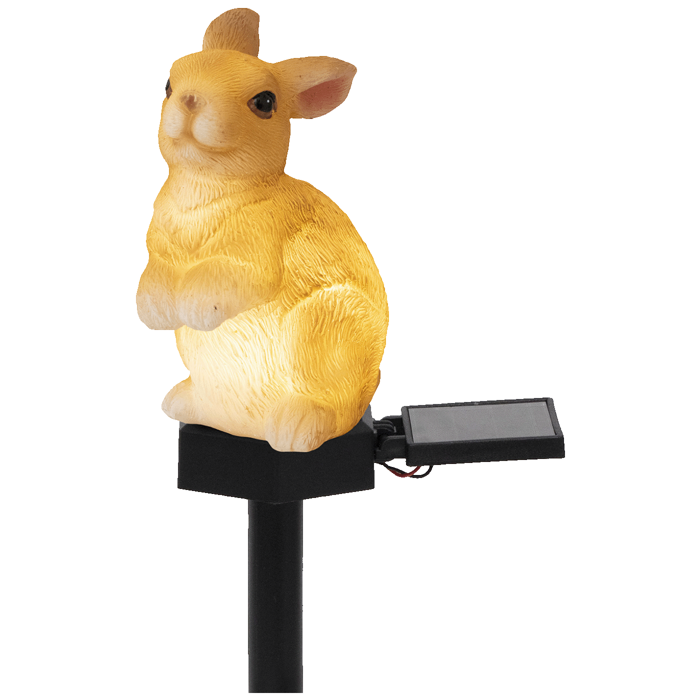 Materijali od smole i plastike lampe u obliku zeca otporni su na vremenske uvjete, što osigurava dug vijek trajanja i otpornost na vanjske utjecaje. Lagana lampa, teška samo 238 g, može se stabilno postaviti u zemlju pomoću 27 cm dugog kolca.
