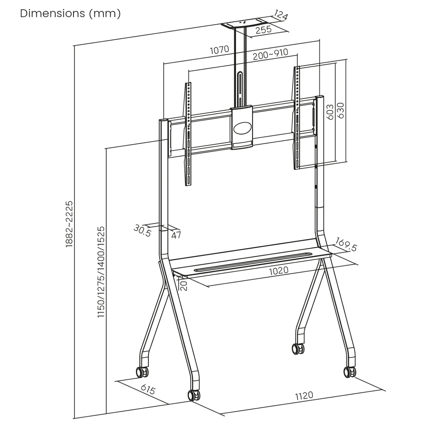 Stalak za TV / kolica, polica za kameru, 55"-100", 120kg.