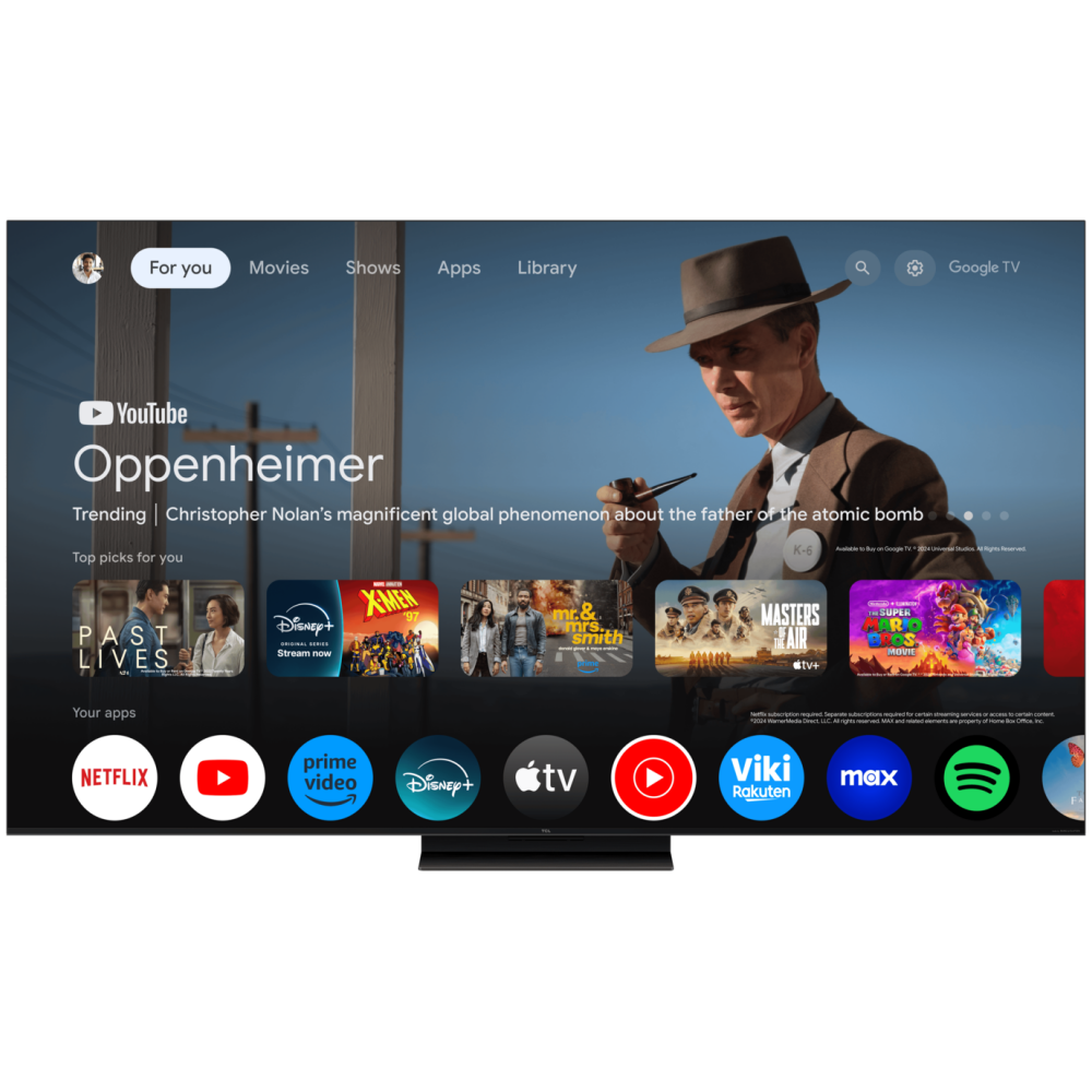 TCL 55"C7K 4K QD-Mini LED TV; 144Hz Google TV; Crystglow HVA Panel; Game Master; Audio Bang & Olufsen; HDR Premium; HDR10+ HDR10 HLG; Netflix Youtube Amazon Prime Apple TV; Chromecast & T-cast; HDMI: 4x 2.1; USB: 1x 3.0;