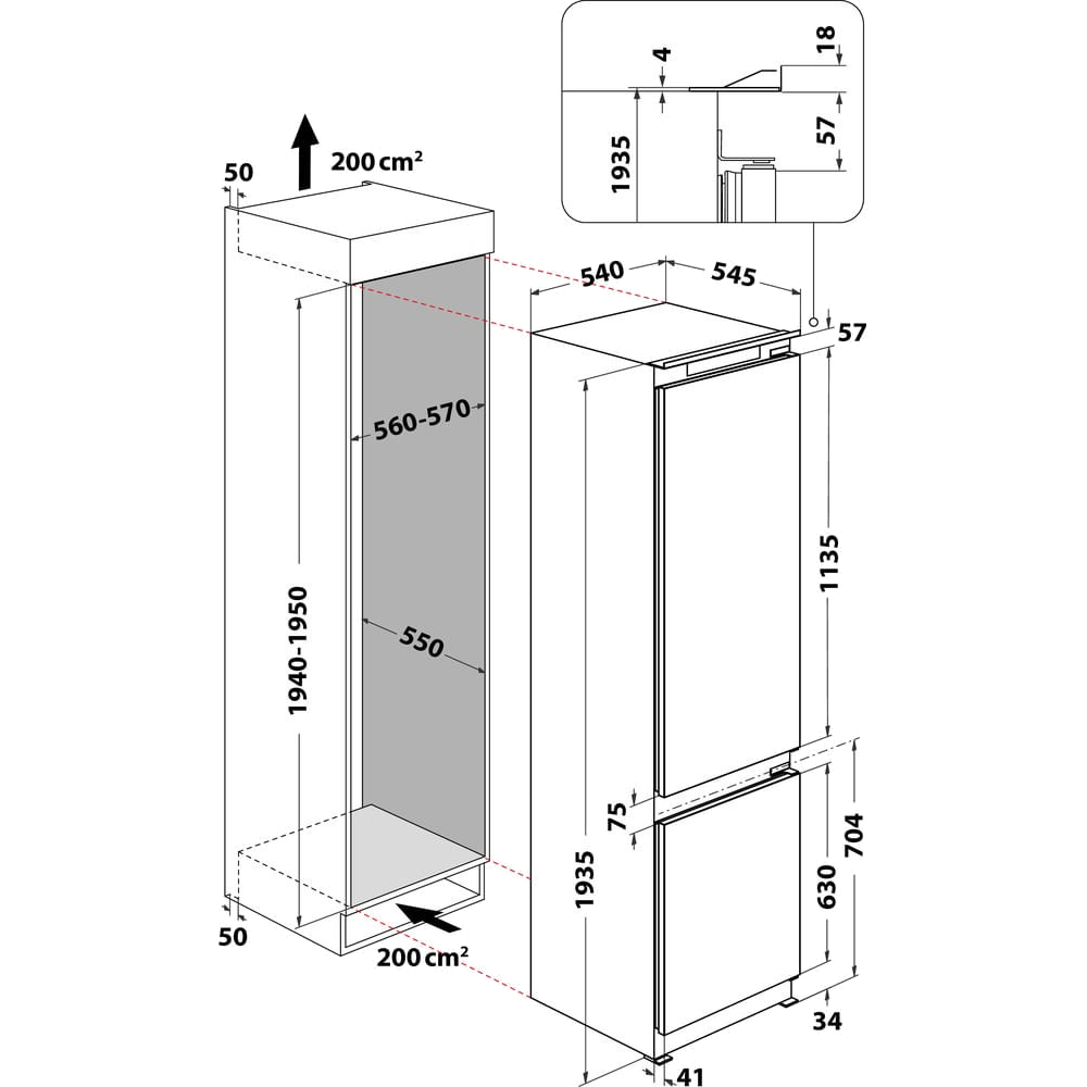 Ugradbeni frižider, zapremina 300 lit., WiFi, E
