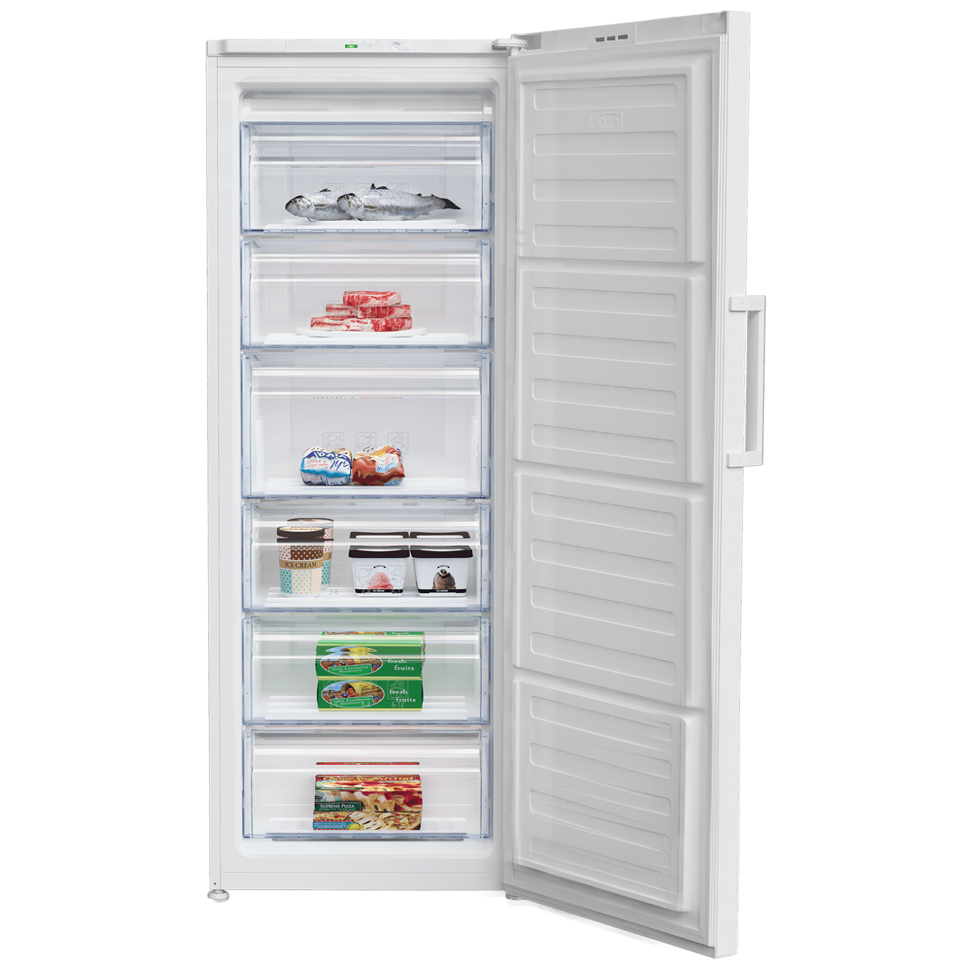 Samostojeći zamrzivač ladičar brutto zapremine 240 litara (netto zapremina 215 litara), brzo zamrzavanje, 6 ladica u zamrzivaču, dnevni kapacite pravljenja kocki leda 1 kg., dnevni kapacitet zamrzavanja 9.8 kg / 24 h., vrata koja se prilagođavaju ...